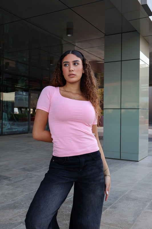 Sold outBABY PINK COTTON ROUND-NECK TOP