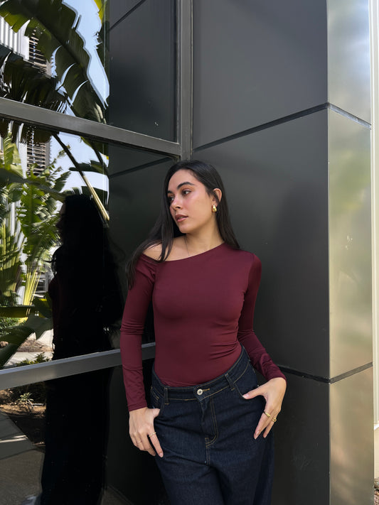 Sold outBURGUNDY ONE-SHOULDER BASIC TOP