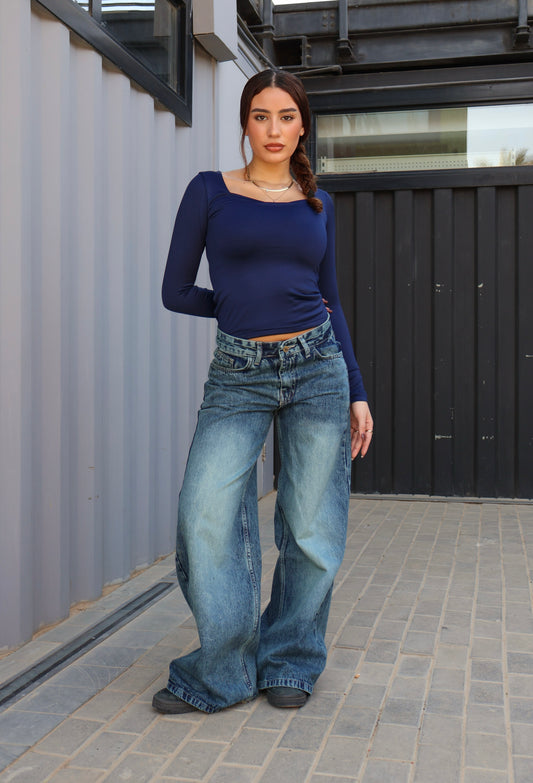 VINTAGE BLUE LOW-WAIST WIDE LEG DENIM