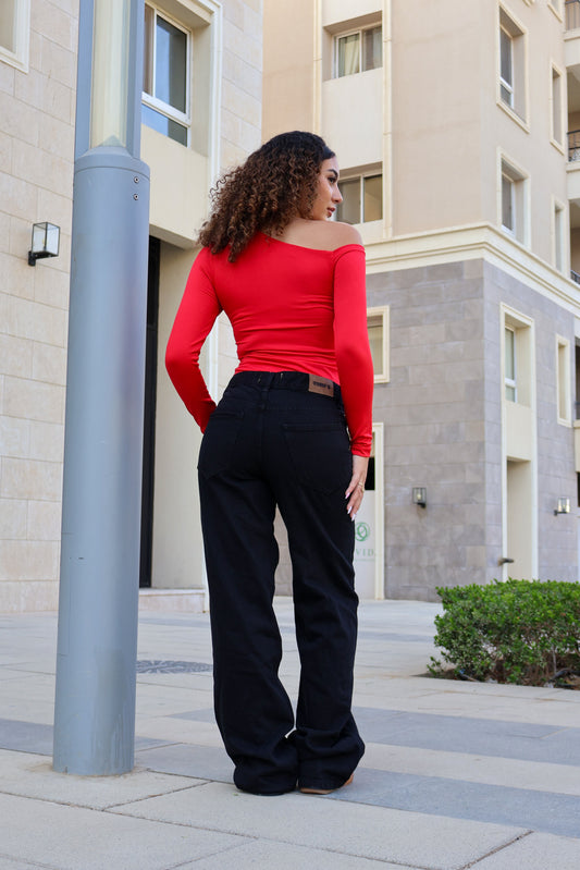 RED ONE-SHOULDER BASIC TOP