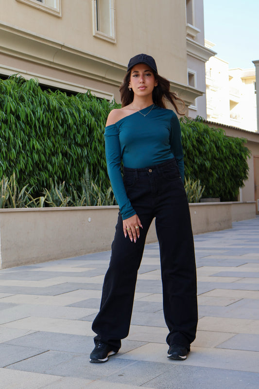PETROL-GREEN ONE SHOULDER BASIC TOP