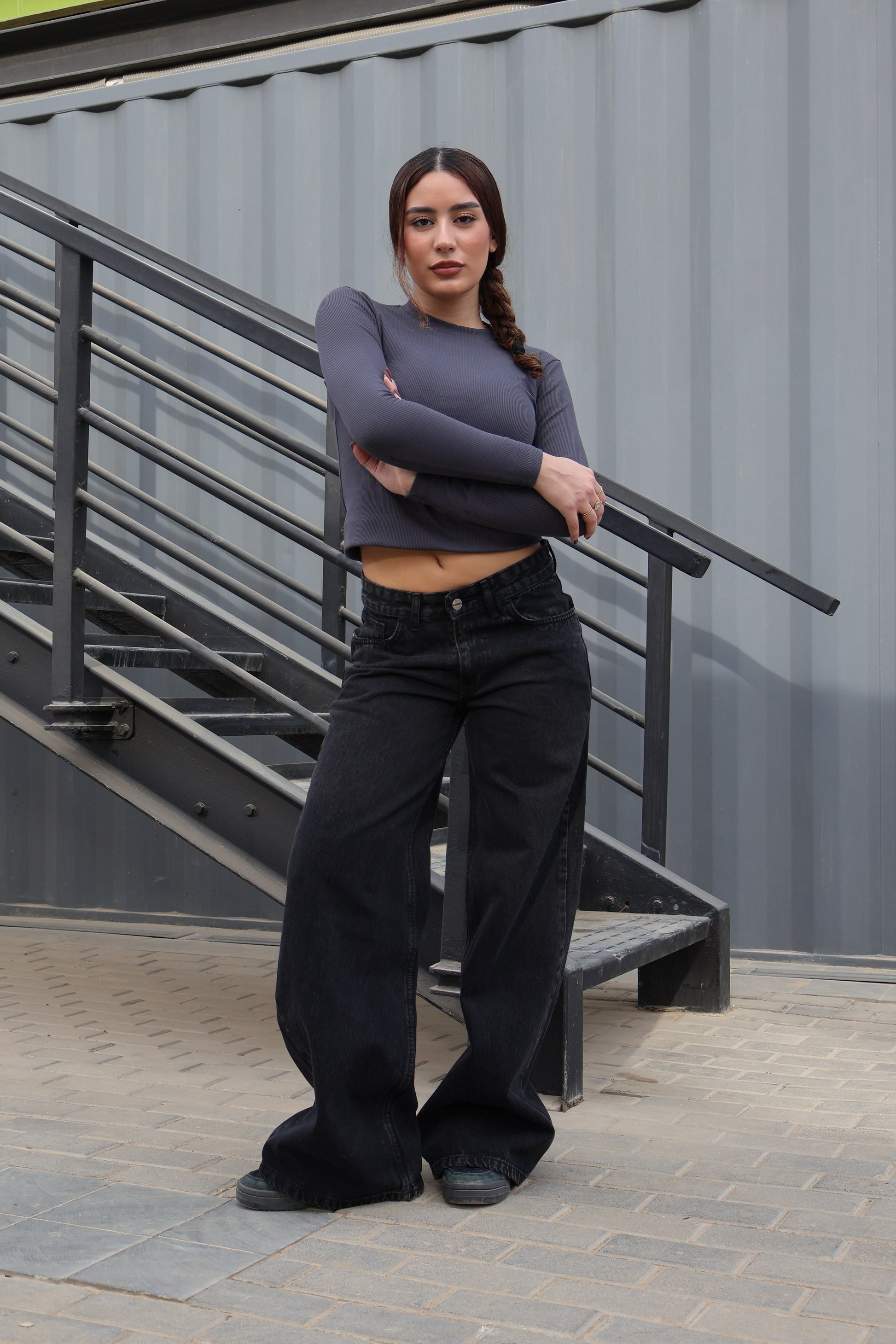 BLACK LOW-WAIST WIDE LEG DENIM