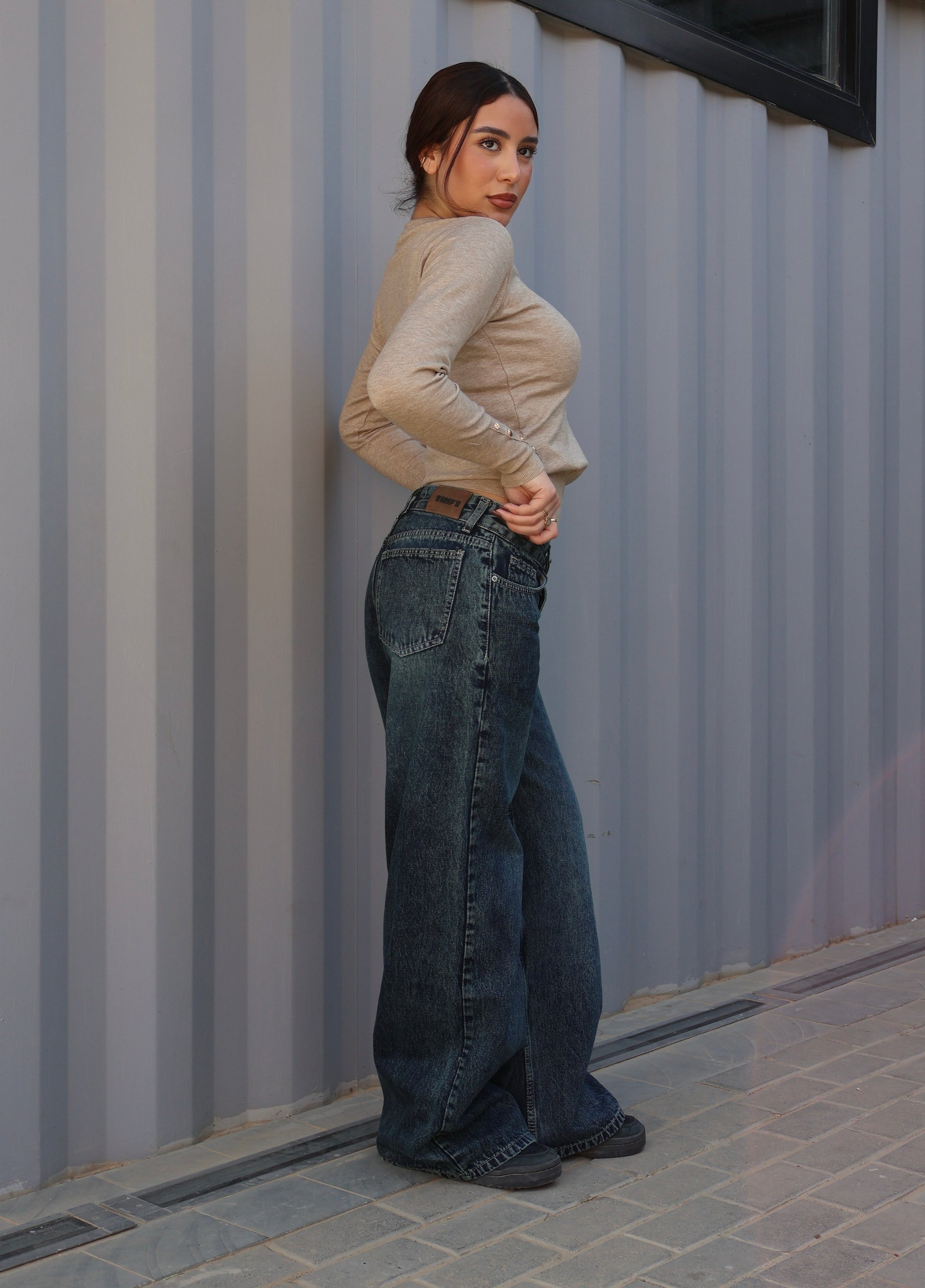 BLUE GREEN LOW-WAIST WIDE LEG DENIM