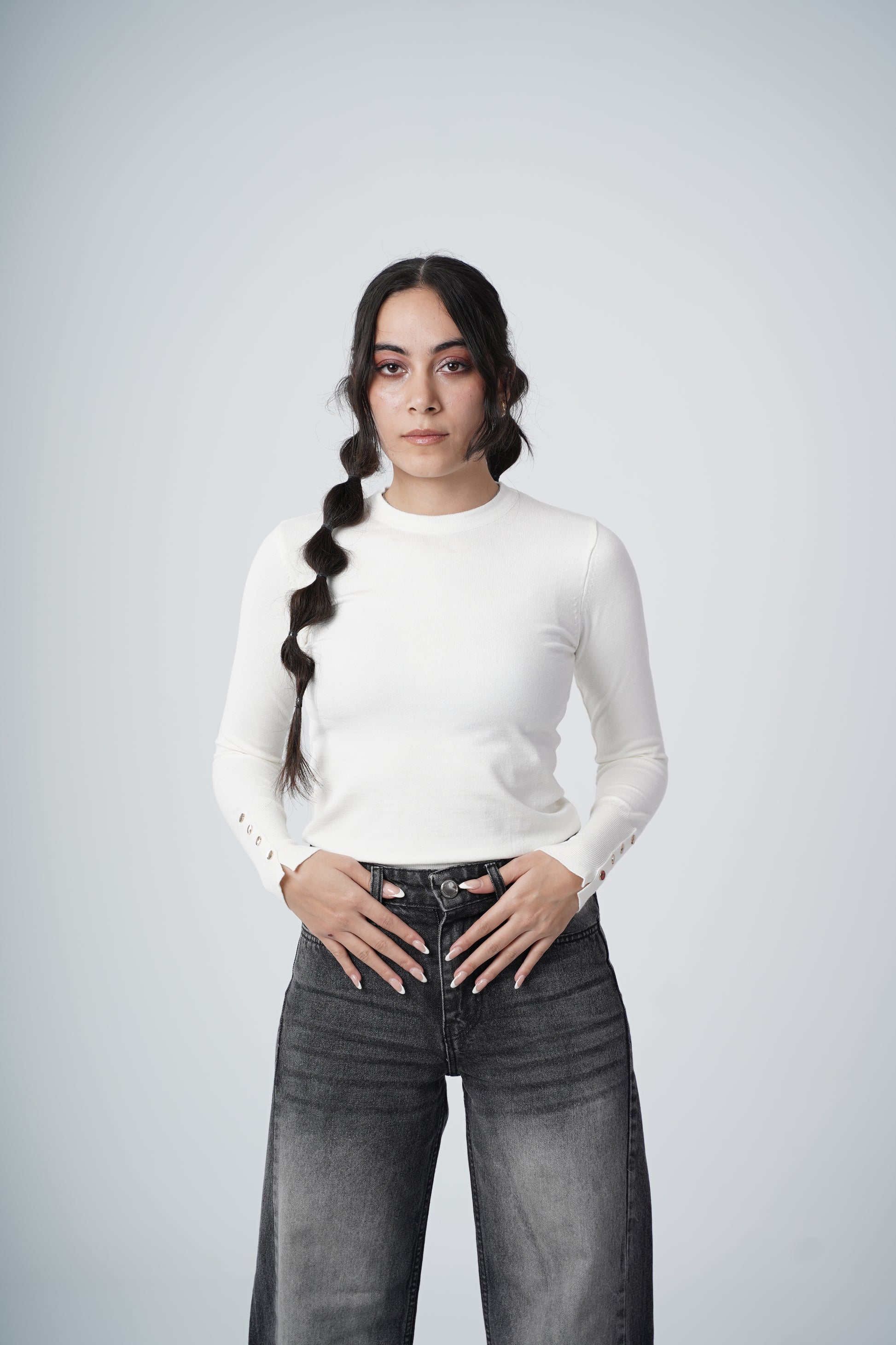 OFF WHITE CREW NECK KNIT TOP